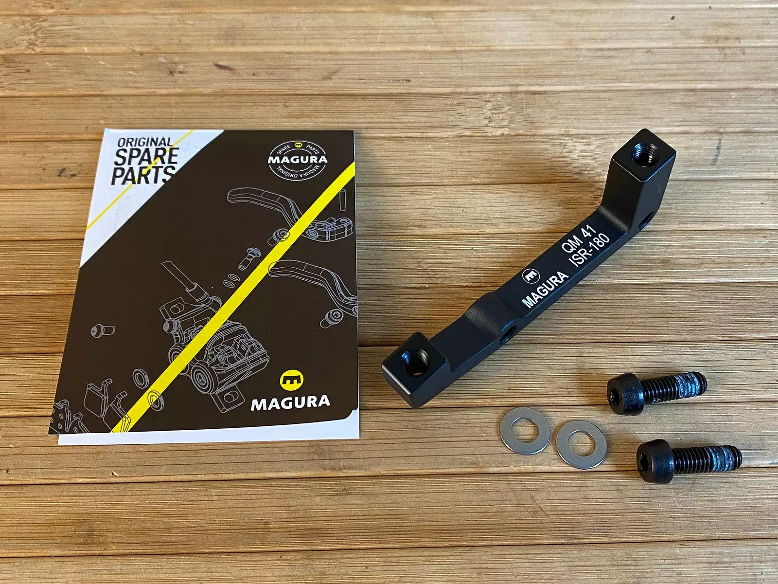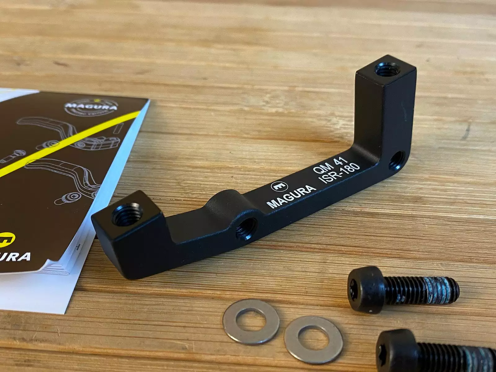Lieferumfang: Bremsadapter, Schrauben, Unterlegscheiben, Anleitung