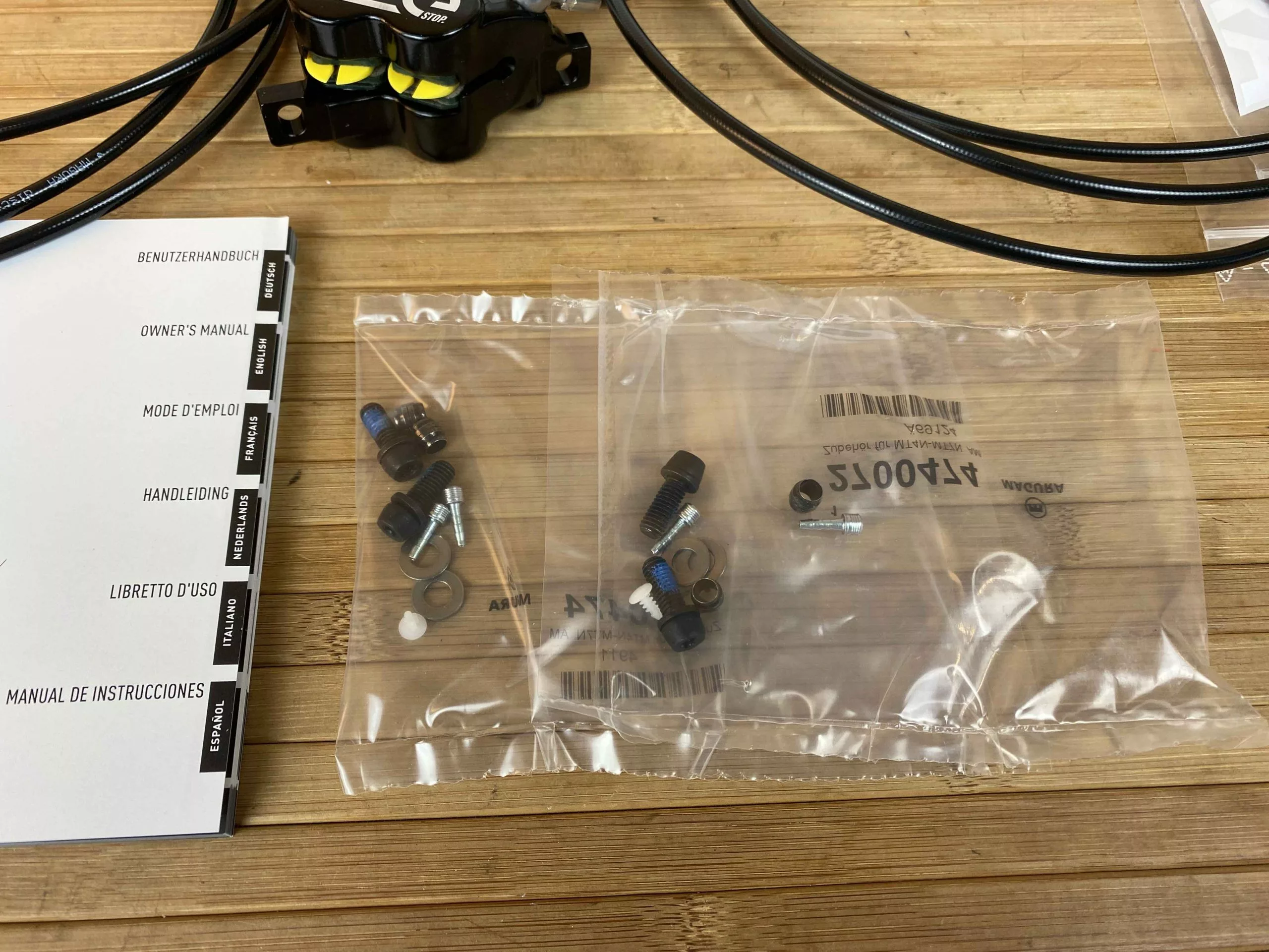 Lieferumfang: Bremse VR+HR, Kleinteileset, Sticker, Anleitung