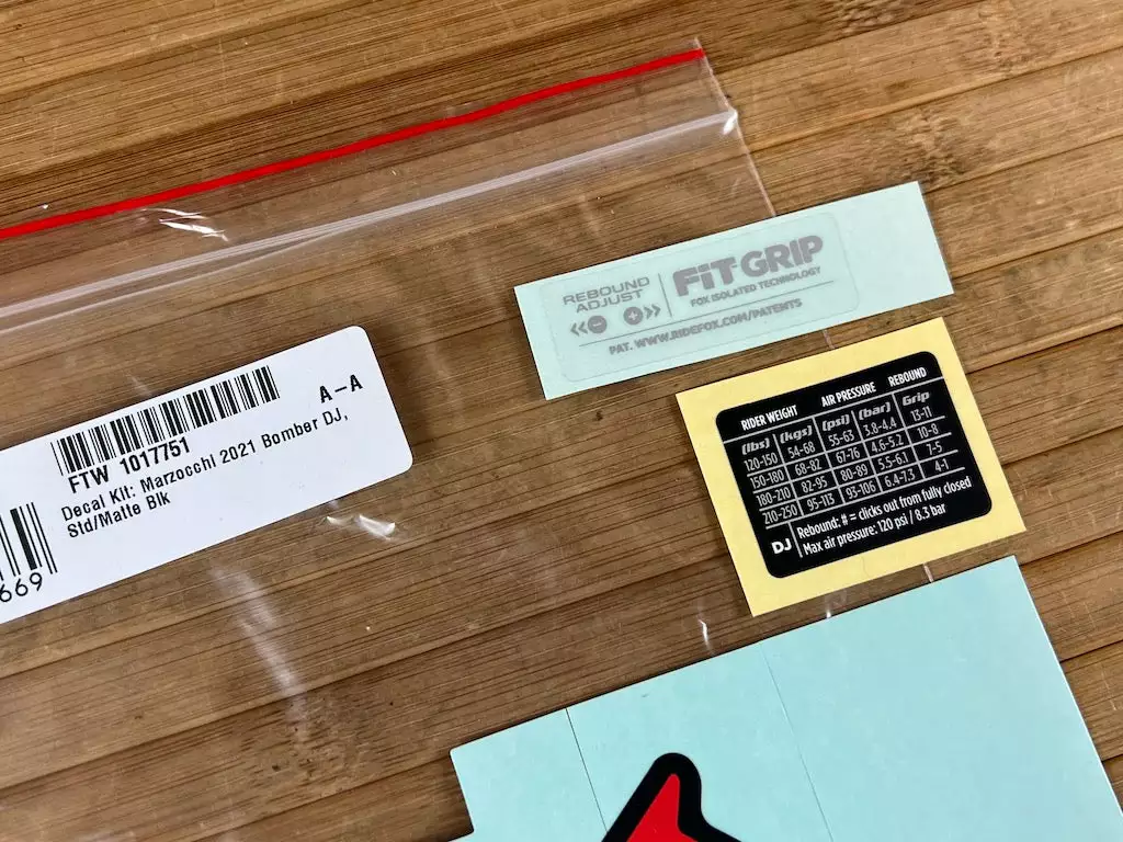 Decal Kit: Marzocchi 2021 Bomber DJ Std/Matte Blk