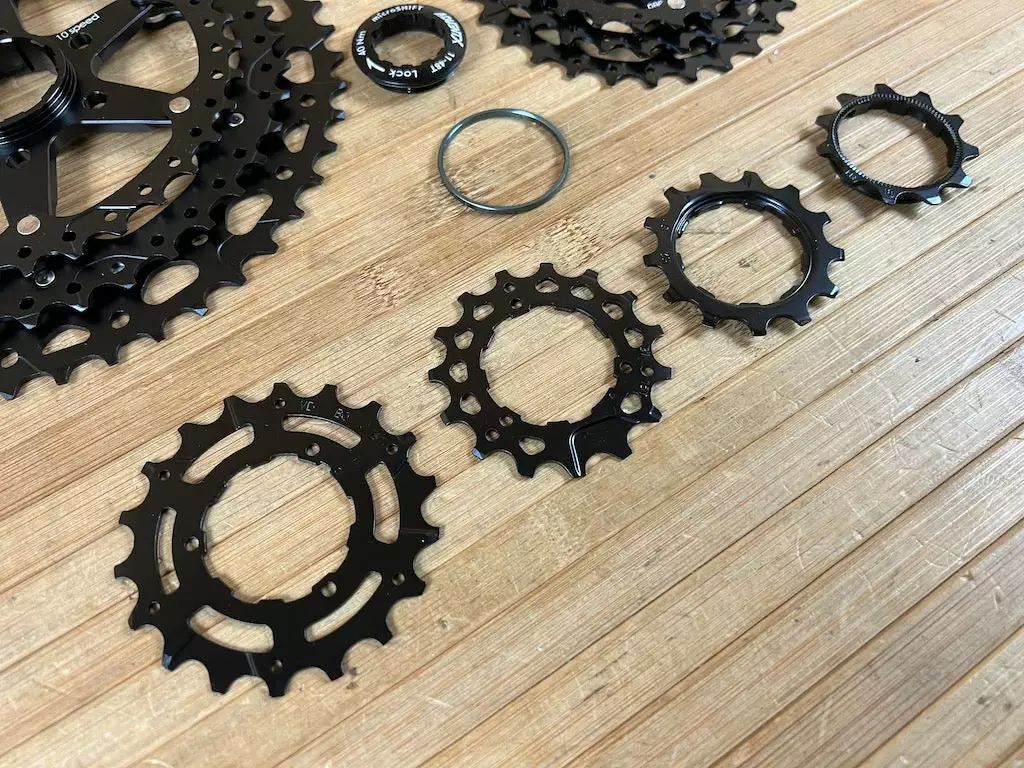 Manchmal ist weniger mehr! Mit 10 Gängen und 11-48t mit gleichmäßig abgestuften Schritten ermöglicht die Advent X Cassette eine einfachere Gangwahl mit weniger Schaltvorgängen. Weniger Ritzel bedeuten auch weniger Gewicht, eine breitere Kette in der weniger Drecken hängen bleibt und die Kassette passt auf Standard Freilaufkörper sodass man hierfür nicht in neue Laufräder investieren muss. Die Ritzel bestehen aus einer MIschung aus Alu und Stahl.