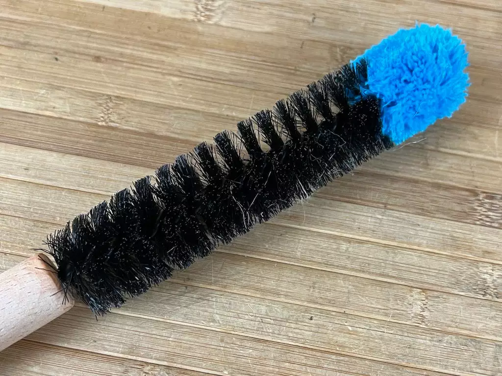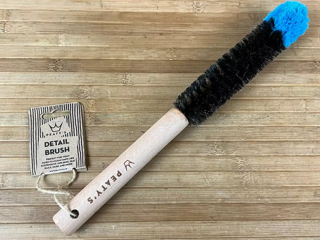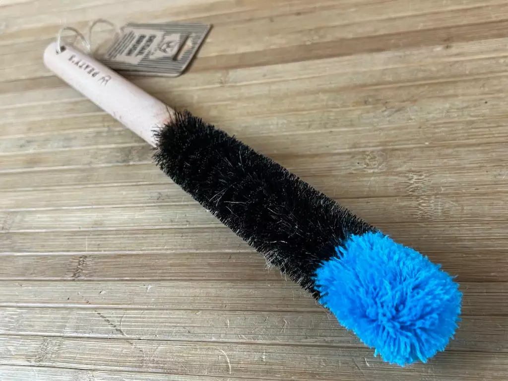Diese dünne, zylindrische Bürste mit einem Drahtkern ist die perfekte Ergänzung zur großen Bürste und wurde entwickelt, um in die kleinen, schwer zu reinigenden Zwischenräume wie Federungsverbindungen, Pedale, Gabelbrücken, Sattelstreben, Naben und zwischen die Speichen zu gelangen. Der steife Drahtkern ist beschichtet, um Beschädigungen zu vermeiden, während die dicke, superweiche Baumwollspitze verhindert, dass das Ende des Drahtkerns den Lack zerkratzt.