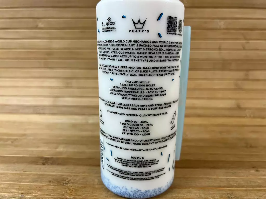 In Zusammenarbeit mit Weltcup-Mechanikern und Weltmeister-Rennfahrern entwickelt. Das Holeshot Tubeless-Dichtmittel von Peaty’s ist mit biologisch abbaubaren Fasern und Dichtungspartikeln angereichert, um eine schnelle und zuverlässige Abdichtung zu gewährleisten. Das Dichtmittel auf Wasserbasis ist ammoniakfrei, ungefährlich und hält in gemäßigten Klimazonen* bis zu 6 Monate im Reifen. Es verklumpt nicht im Reifen und lässt sich leicht auswaschen. Die biologisch abbaubaren Fasern und Partikel verbinden sich mit dem schnell reagierenden Latex und bilden ein Gerinnsel (wie die Blutplättchen in unserem Blut), das Löcher und Risse bis zu 6 mm schnell und effektiv abdichtet.