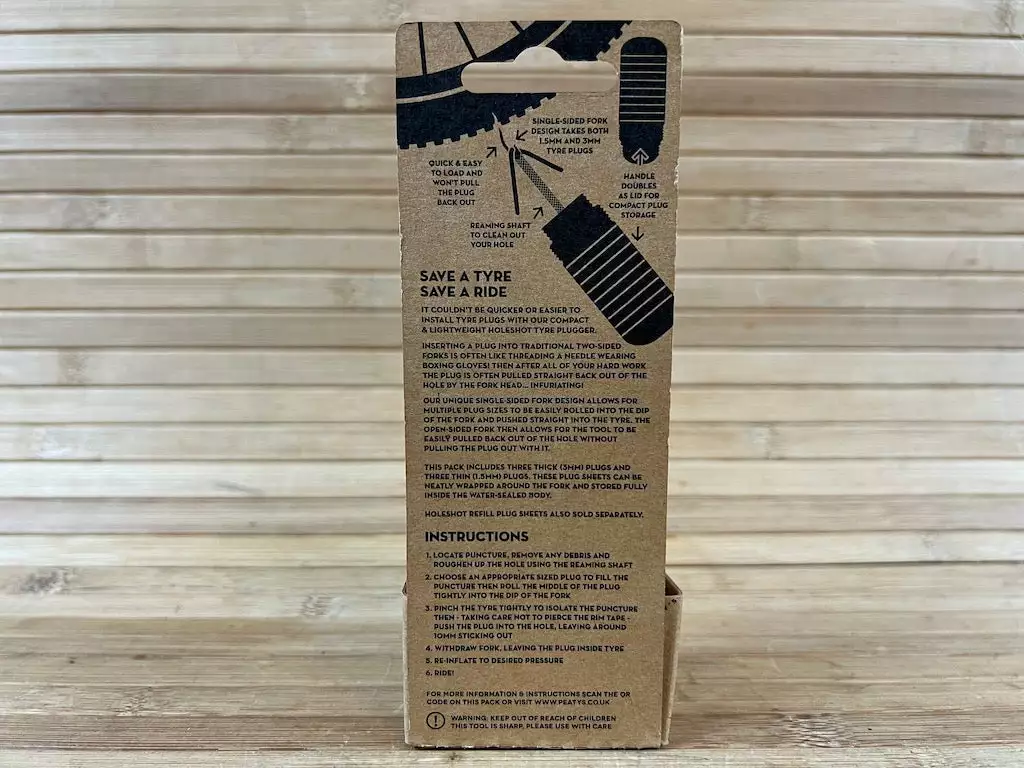 Peaty’s spezielles Nadeldesign erleichtert das Einsetzen verschiedener Pluggrößen in die Vertiefung der Nadel und ermöglicht es, diese direkt in den Reifen zu drücken. Die offene Seite der Spitze ermöglicht es dann, das Tool einfach wieder aus dem Loch zu ziehen, ohne den Plug mit herauszuziehen.
