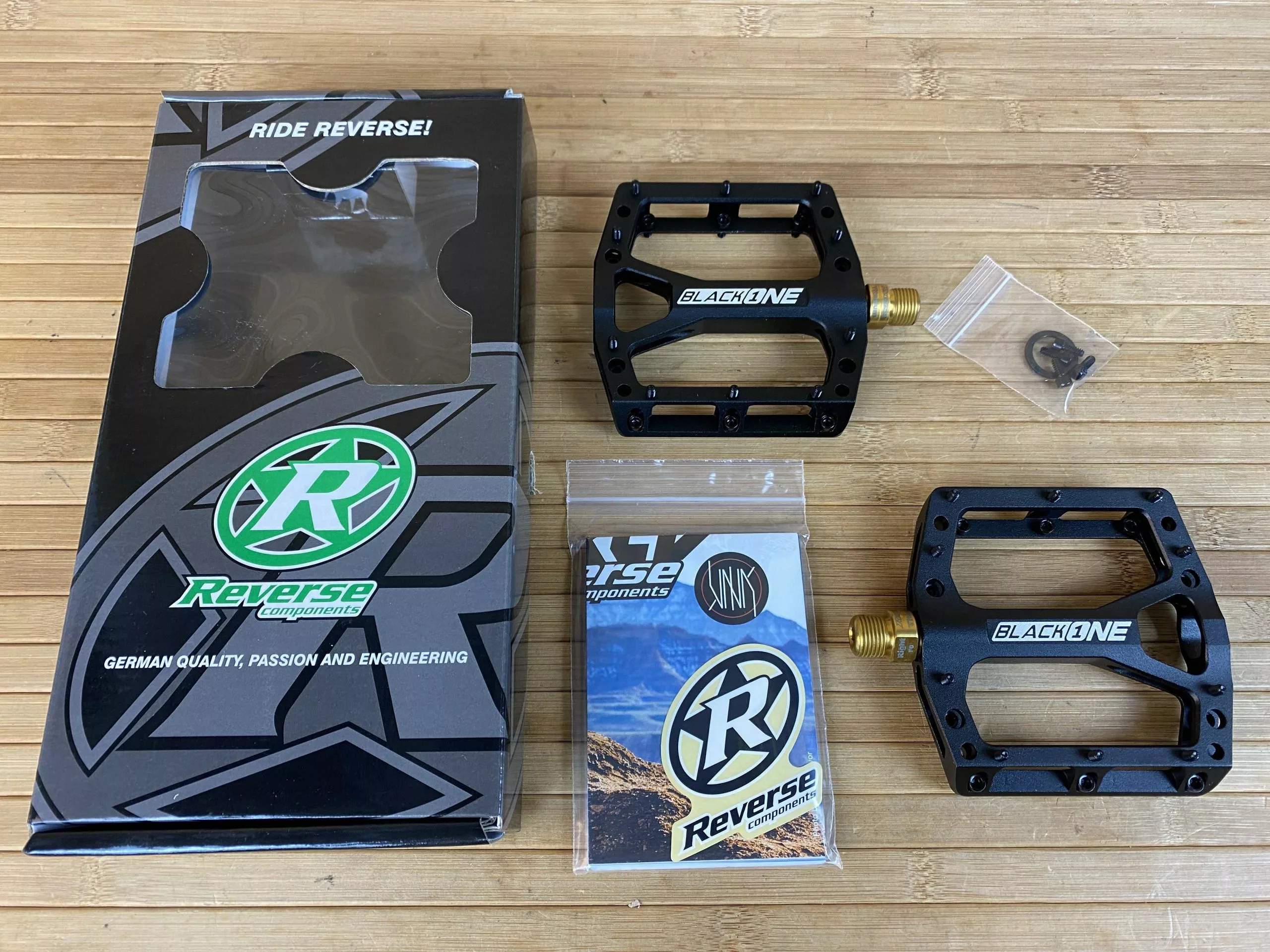 Lieferumfang: Pedale, Unterlegscheiben, Sticker, Anleitung, 4 Ersatzpins